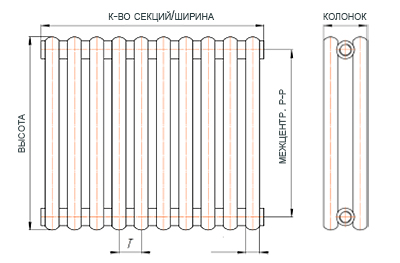 Радиаторы отопления РСК – модифицированная модель радиаторов РС. Коллектор имеет сечение круглой формы.